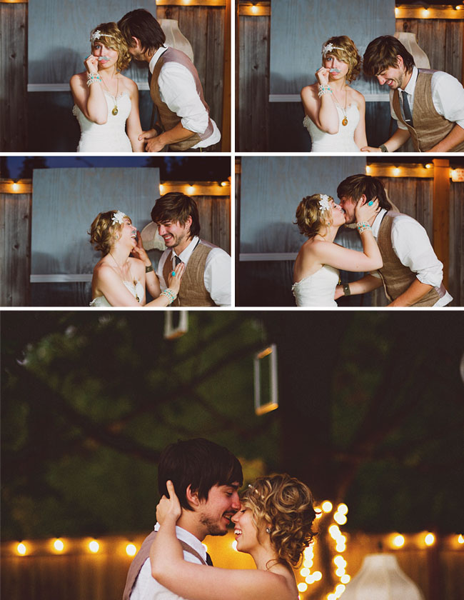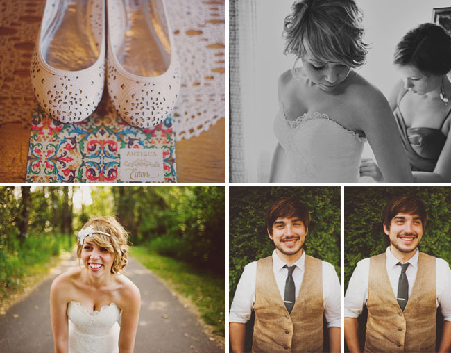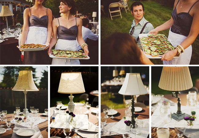 Jordan and Nick are just the most adorable couple. Maybe it's because Jordan reminds me of Taylor Swift and has that all-American sweetheart charm. Their wedding is 100% original to me - from the altar created with vintage photo frames to the lamp centerpieces and mismatched chairs, the decor and vintage style of this wedding is truly unique. Once again, this is a backyard wedding which I obviously adore. And I think it's awesome that the bridesmaids did waitress duty. Not that I think they should be spending the majority of their time serving food but it's a nice homey touch that I find very sweet. I also love that Jordan walked down the aisle to the much-covered Bob Dylan tune "To Make You Feel My Love" performed by a friend of the couple's. And Jordan's shoes were great. So much to love!